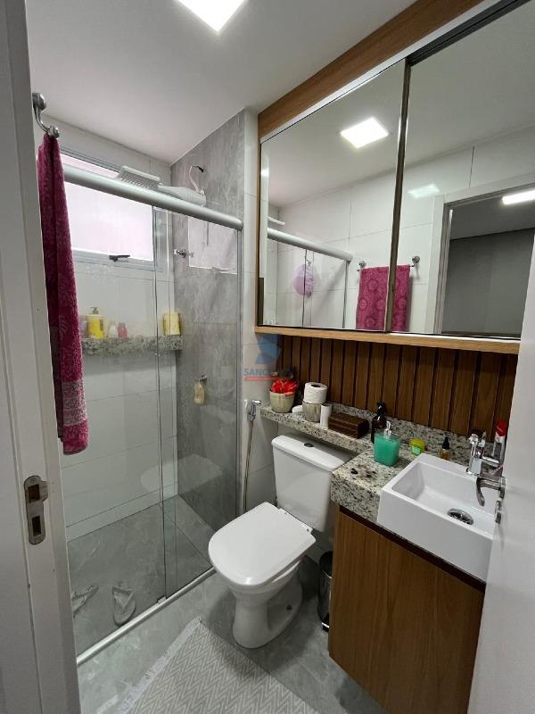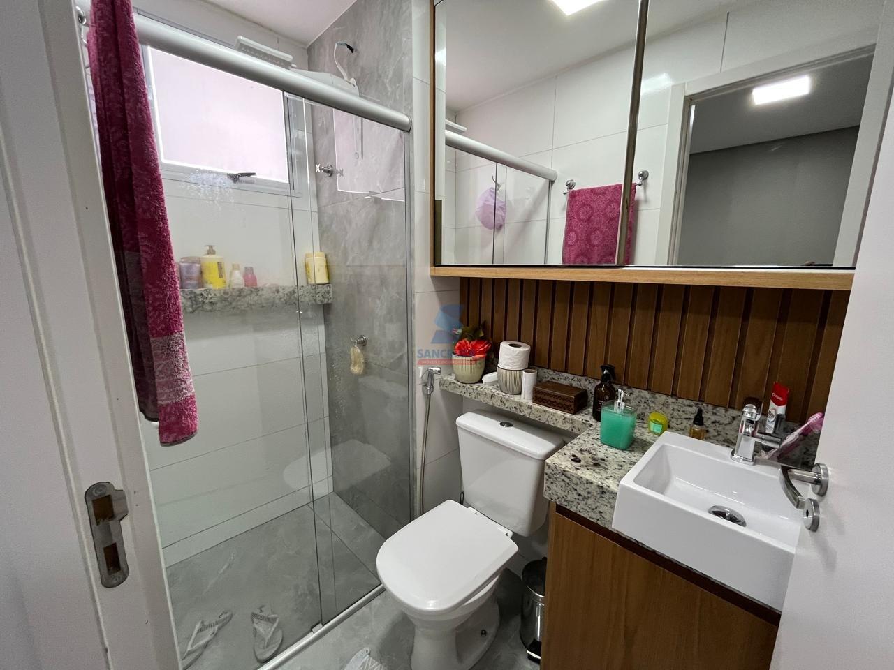O apartamento, tem 54,23 m², com dois quartos com armários (um suíte), sala para dois ambientes com varanda integrada a sala, cozinha com armários planejados espaçosa, área de serviço integrada e banheiro social. Os banheiros possuem armários e espelhos, box blindex . O piso todo em porcelanato. Além de uma vista privilegiada e sol da manhã.