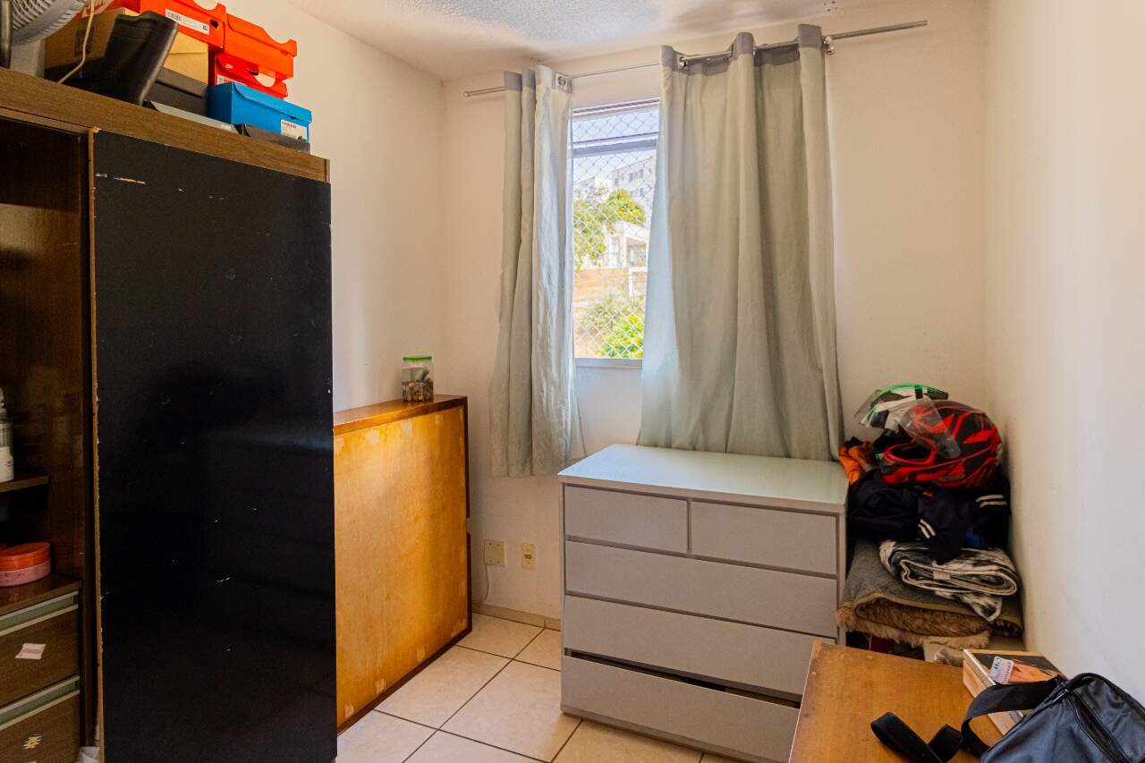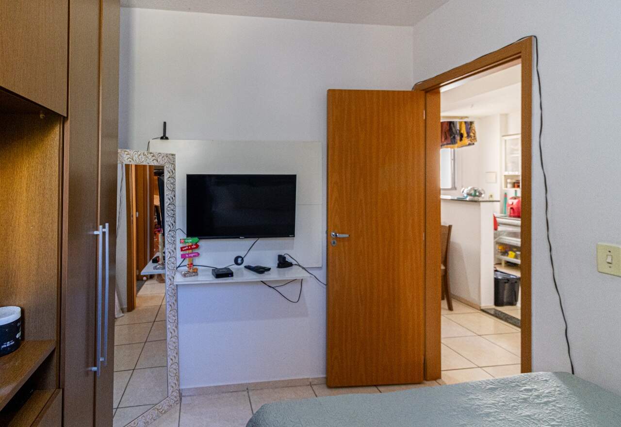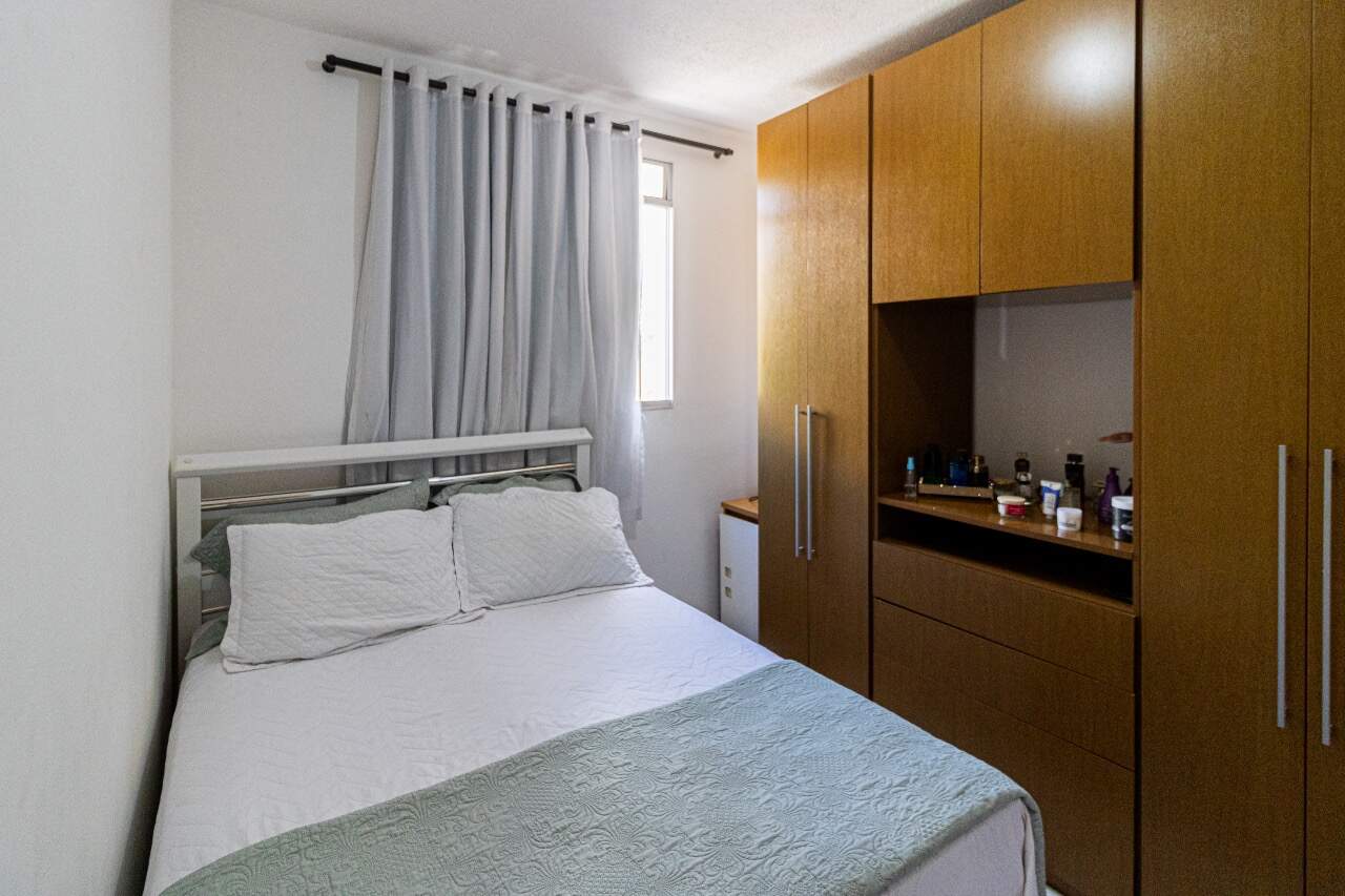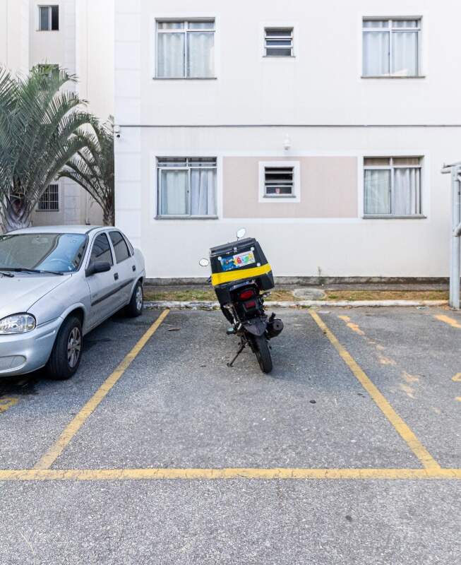 Apartamento com 44 m² sendo 01 sala, 01 cozinha, área de serviço, 02 quartos e 01 banheiro com box blindex. 01 vaga demarcada livre.