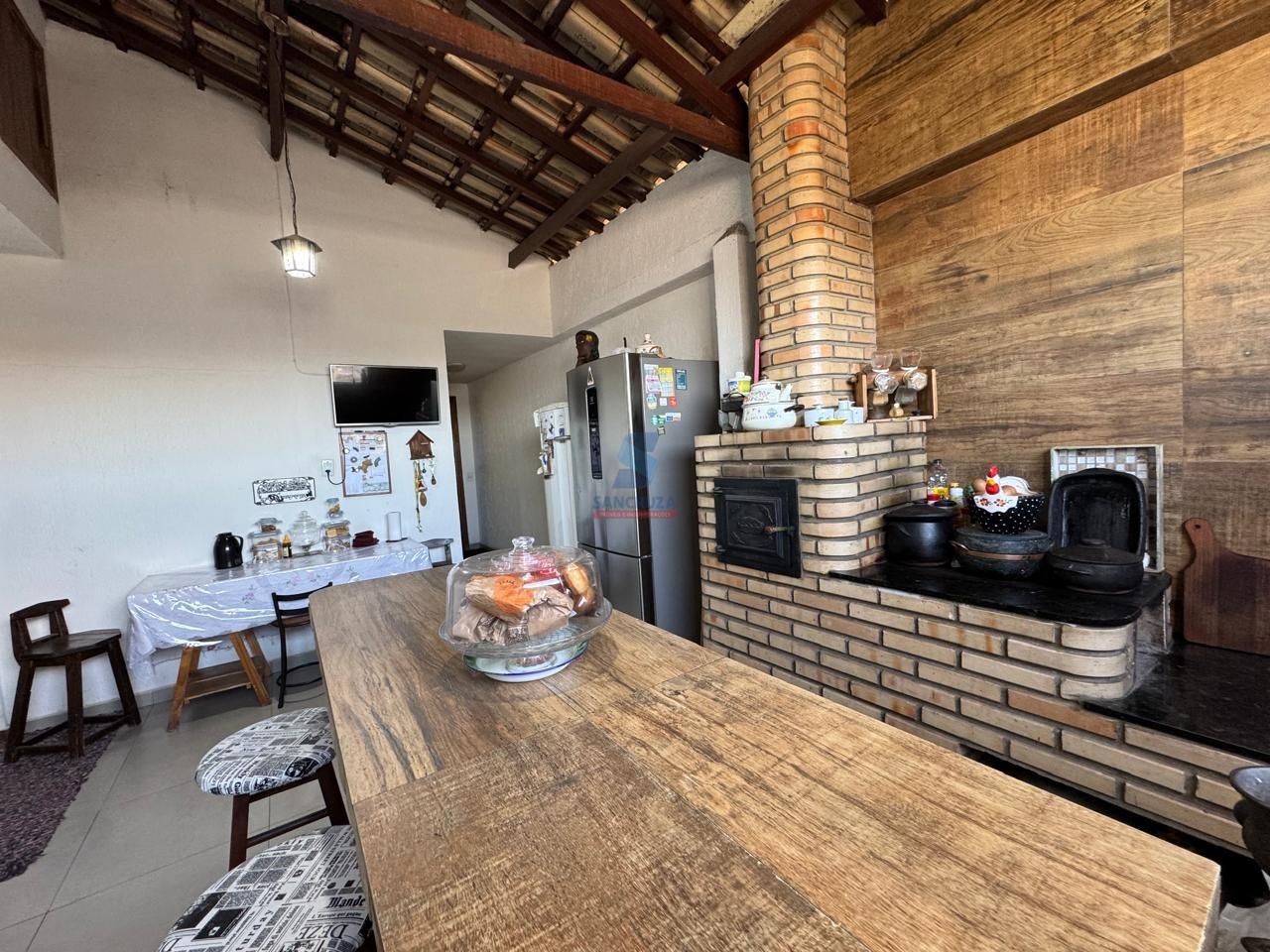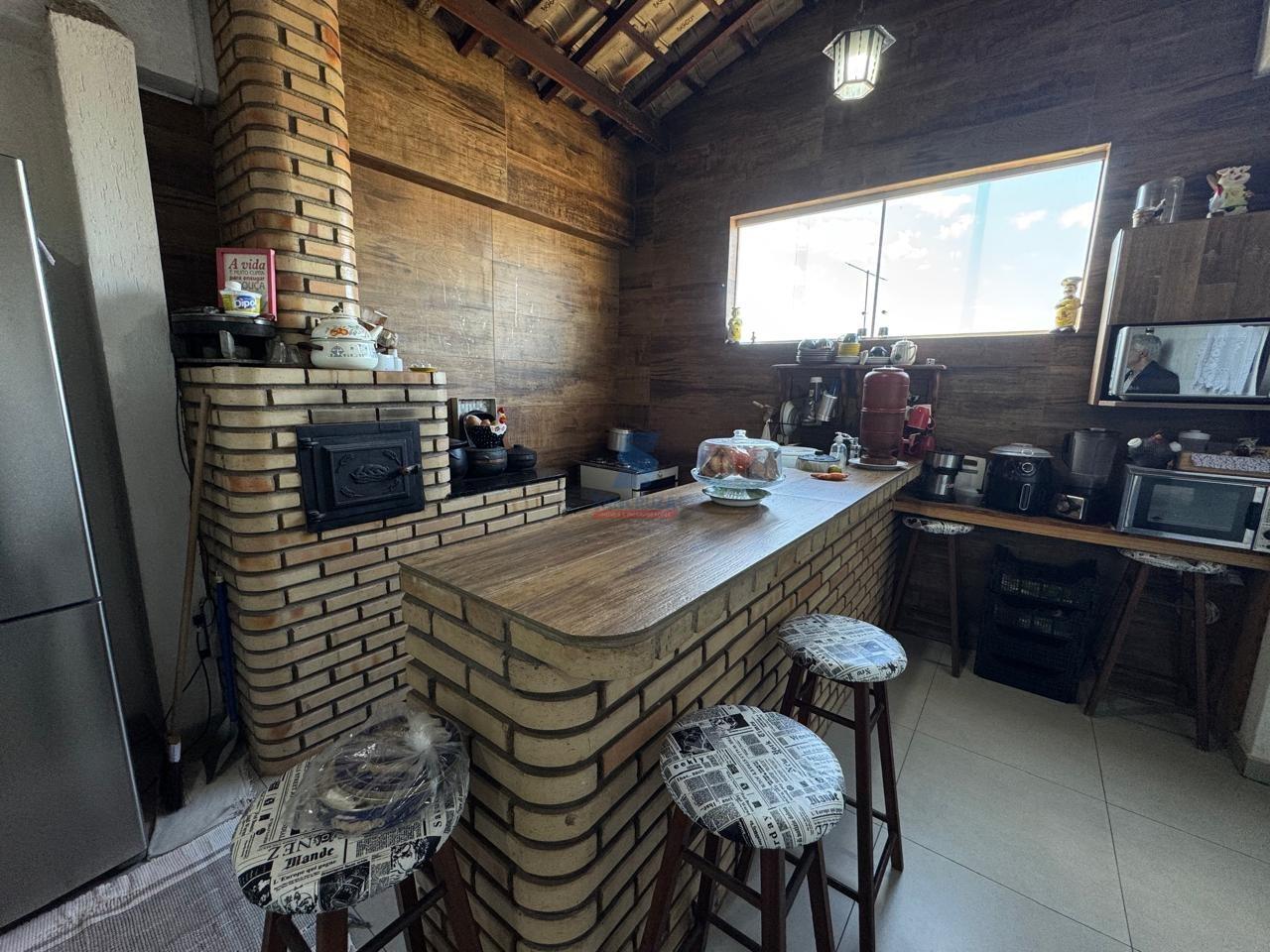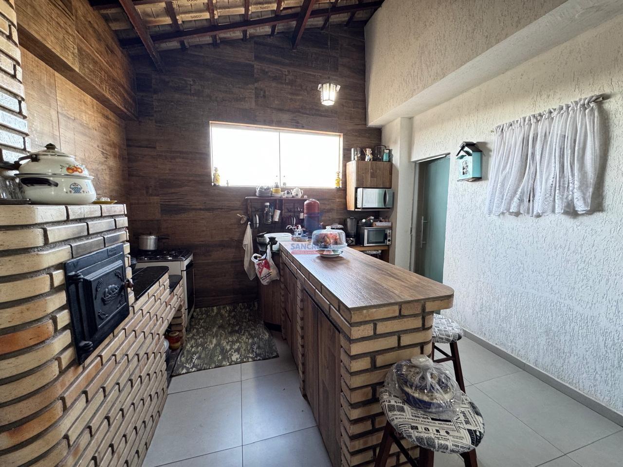 01 Cozinha com fogão a lenha, bancada planejada e despensa