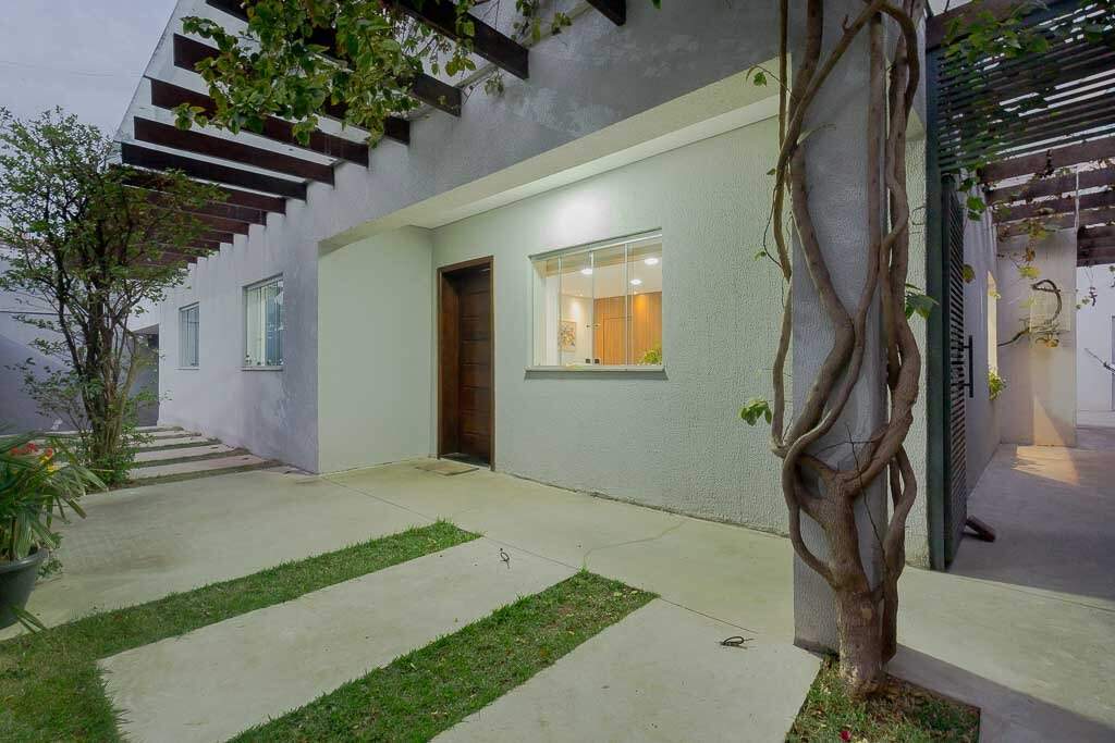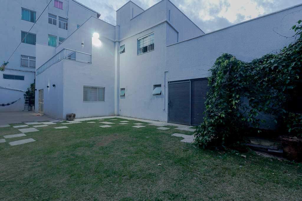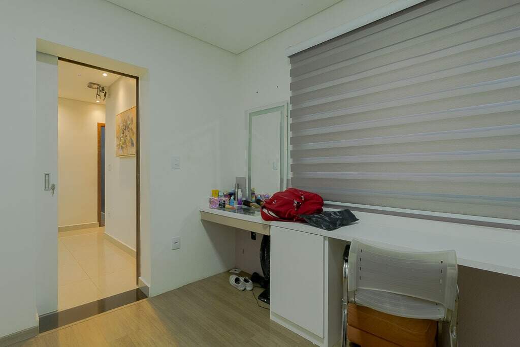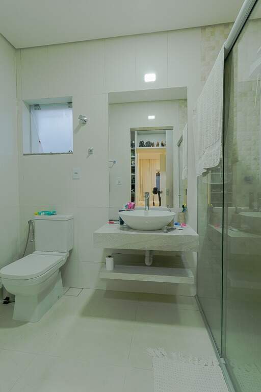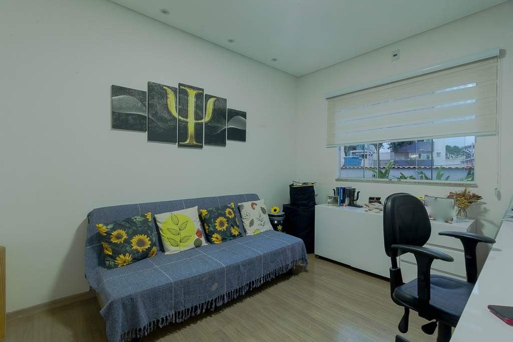 Quintal amplo com área gramada, jardim, área gourmet com churrasqueira, 2 banheiros, lavanderia, quarto de despejo, garagem para até 4 veículos pequenos, sistema de segurança com câmeras, controle de acesso biométrico, iluminação.