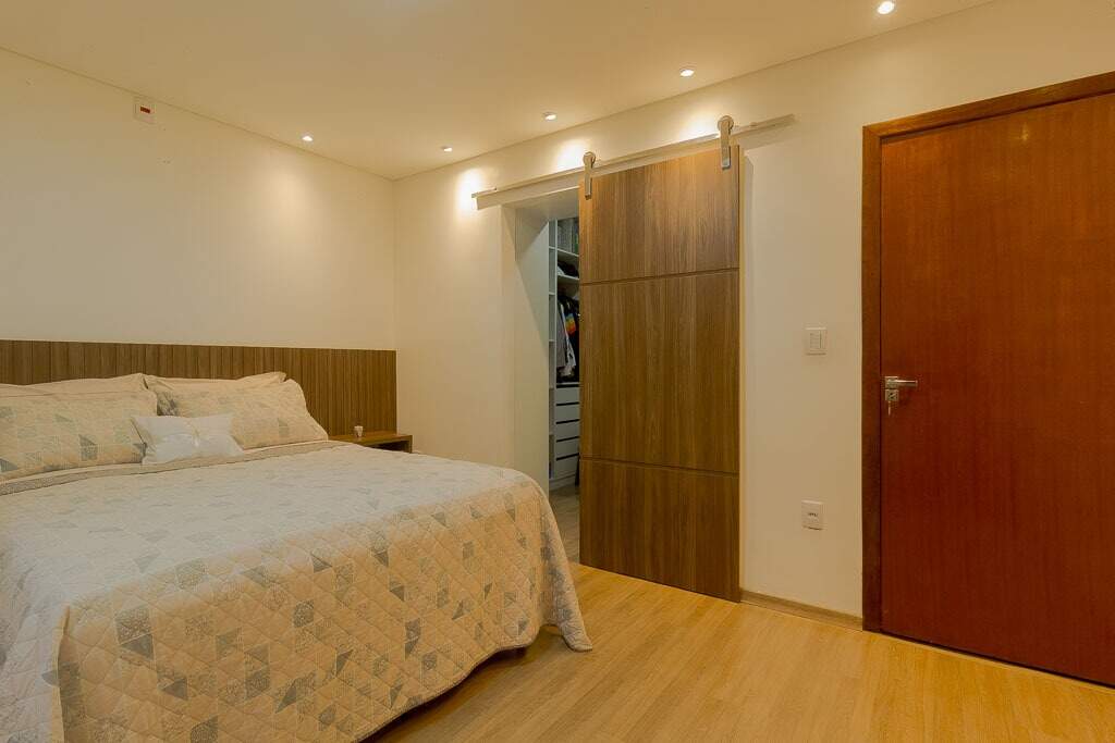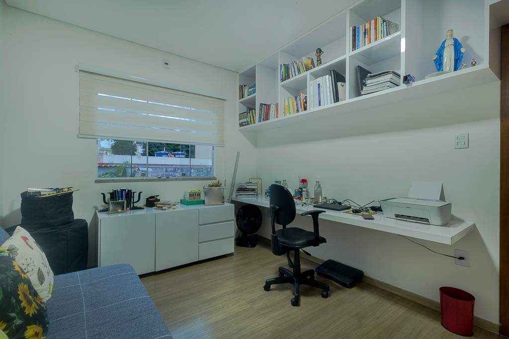 1º pavimento: Sala ampla e arejada em conceito aberto conjugada com cozinha muito bem planejada, ilha gourmet, 3 quartos planejados sendo 1 suíte com closet, banheiro social.