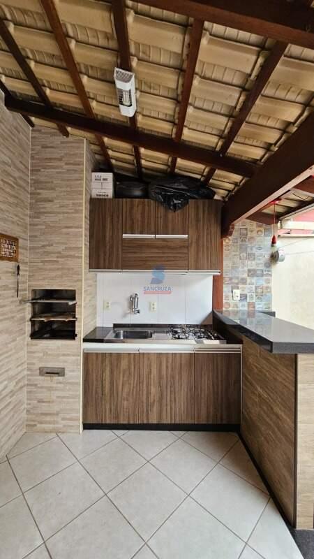 Parte externa da casa: Área serviço, com armários, sendo coberta por um telhado colonial, área gourmet com churrasqueira, bancada em granito, e armário planejado, sendo coberta por um telhado colonial, 01 pequena área descoberta.