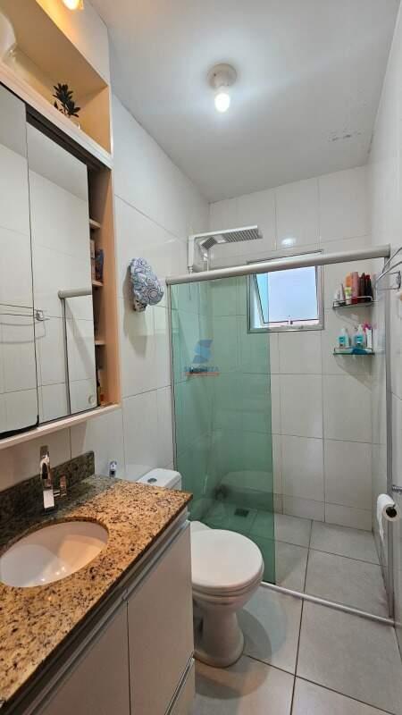 Casa geminada com entrada individual em 02 níveis com 71m² de área útil construída, em lote de 100m², sendo 1° Nível: Sala para 02 ambientes, com teto rebaixado em gesso e luz dicroica, rack para TV e escada que dá acesso ao segundo nível, cozinha, com bancada em granito, armários planejados, sendo toda revestida e arejada, lavabo, com teto rebaixado em gesso e luz dicroica, armário sob a pia. 2° Nível: 02 ótimos quartos, todos com armário planejado, sendo 01 Quarto com ar condicionado e varanda, banho social, com pia em granito, armário planejado, box blindex, sendo todo revestido.