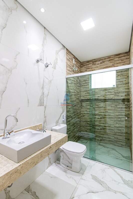 -Banheiro social com excelente acabamento, disposição para agua quente e fria