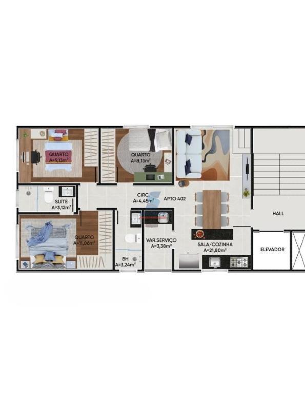 OBS: Predisposição para ar condicionado na sala e quarto (suíte) e predisposição para água quente para banheiros.