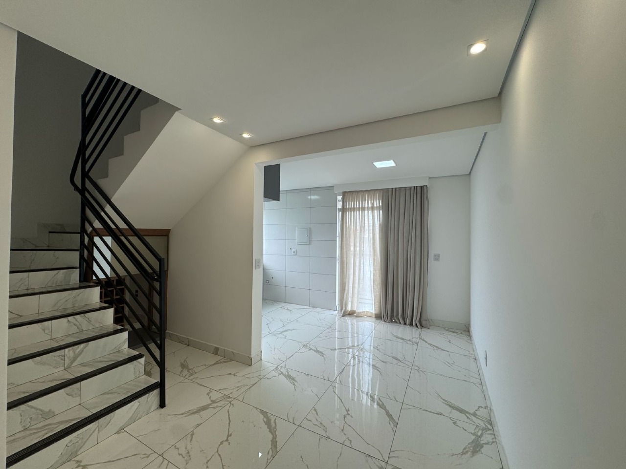 •1- Sala Ampla para 2 Ambientes com piso em Porcelanato e Janela em Blindex