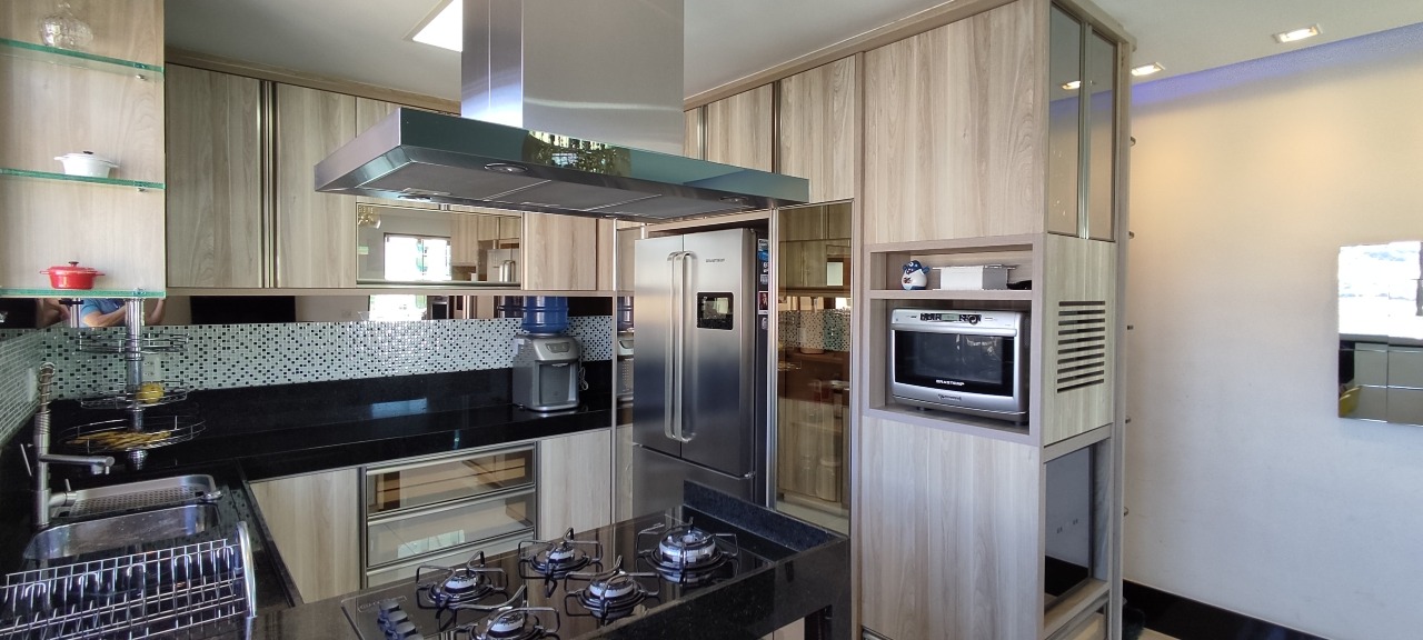 02 Pavimento: Escadas de acesso em alvenaria com acabamento em granito e guarda corpo em blindex e aço inox, cozinha ampla e toda planejada, exaustor. fogão Cook top, sala de jantar, lavanderia, banheiro e espaço descoberto com linda vista panorâmica. Estado de Conservação: Excelente.
